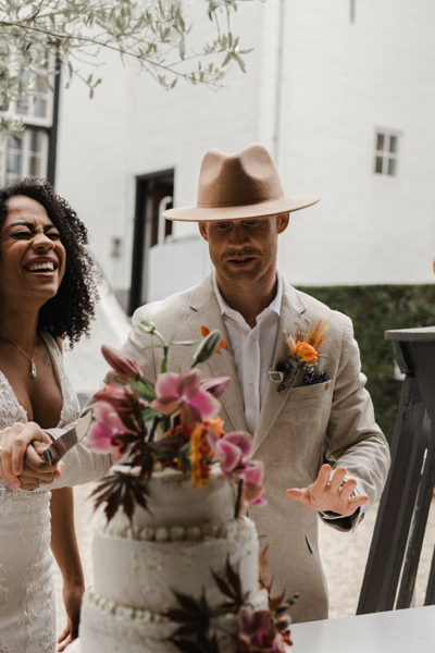 Bohemian bruiloft met oranjetinten in Slot Doddendael